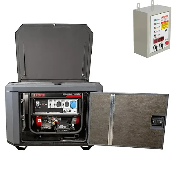 Купить Генератор A-iPower A8000EAX в тихом зимнем кожухе 1200 RAL 7024 + блок автозапуска A-iPower 400 В, 25 А в Челябинске легко — просто позвоните по телефону: 8-800-551-11-01