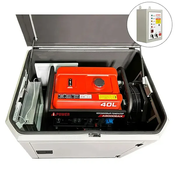 Купить Генератор A-iPower A9000EAX в тихом зимнем кожухе 1200 RAL 7035 + блок автозапуска A-iPower 230 В, 50 А в Челябинске легко — просто позвоните по телефону: 8-800-551-11-01