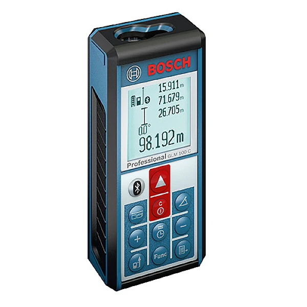 Bosch GLM 100 C – это универсальный лазерный дальномер, один из самых совершенных и функциональных приборов, представленных на рынке измерительного оборудования. Это устройство без сомнения пригодится профессиональным строителям, геодезистам, картографам, монтажникам и прочим специалистам, ведь наряду со стандартными функциями он предлагает совершенно новые уникальные возможности, благодаря которым вы сможете многократно повысить качество и эффективность работ. Bosch GLM 100 C Professional помимо стандартных линейных измерений расстояний до 100 м с точностью ±1мм открывает новые возможности документирования и передачи данных благодаря встроенному беспроводному интерфейсу Bluetooth.