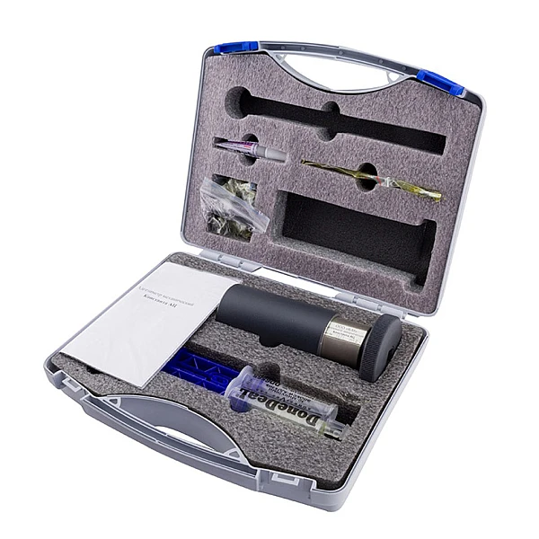 - Прибор использует в работе быстрополимеризующие клеи и адгезивы для приклеивания грибков.