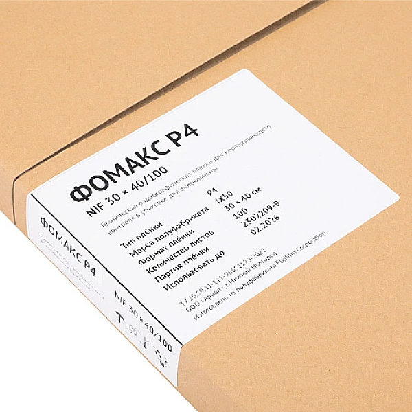 ФОМАКС Р4 — техническая радиографическая пленка для неразрушающего контроля. Изготавливается в России в соответствии с ТУ 20.59.11-111-96651179-2022, из полуфабриката производства Fujifilm Corporation.