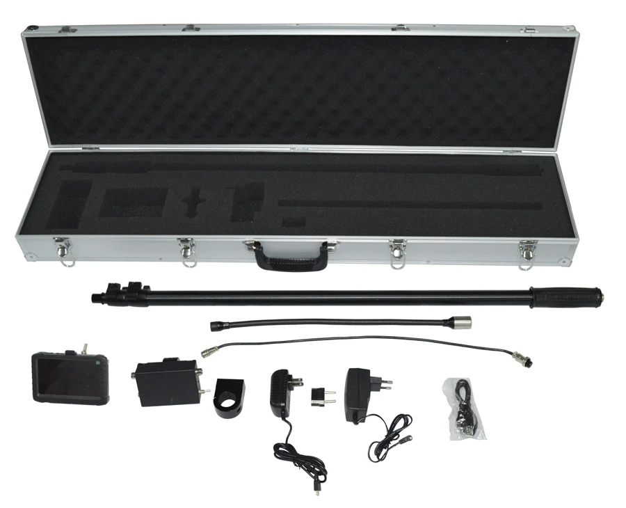 Специализированный эндоскоп для служб безопасности, технических и эксплуатационных бригад. Прибор оснащен управляемой камерой и цветным дисплеем 4', он прост и удобен в работе. Диаметр камеры: 22 мм, класс герметичности IP 66 Длина в разложенном состоянии: 3,1 метра Телескопическая конструкция Удобное средство визуального осмотра пространств под транспортными средствами, на крыше вагонов или фур, внутри в емкостях и цистернах.